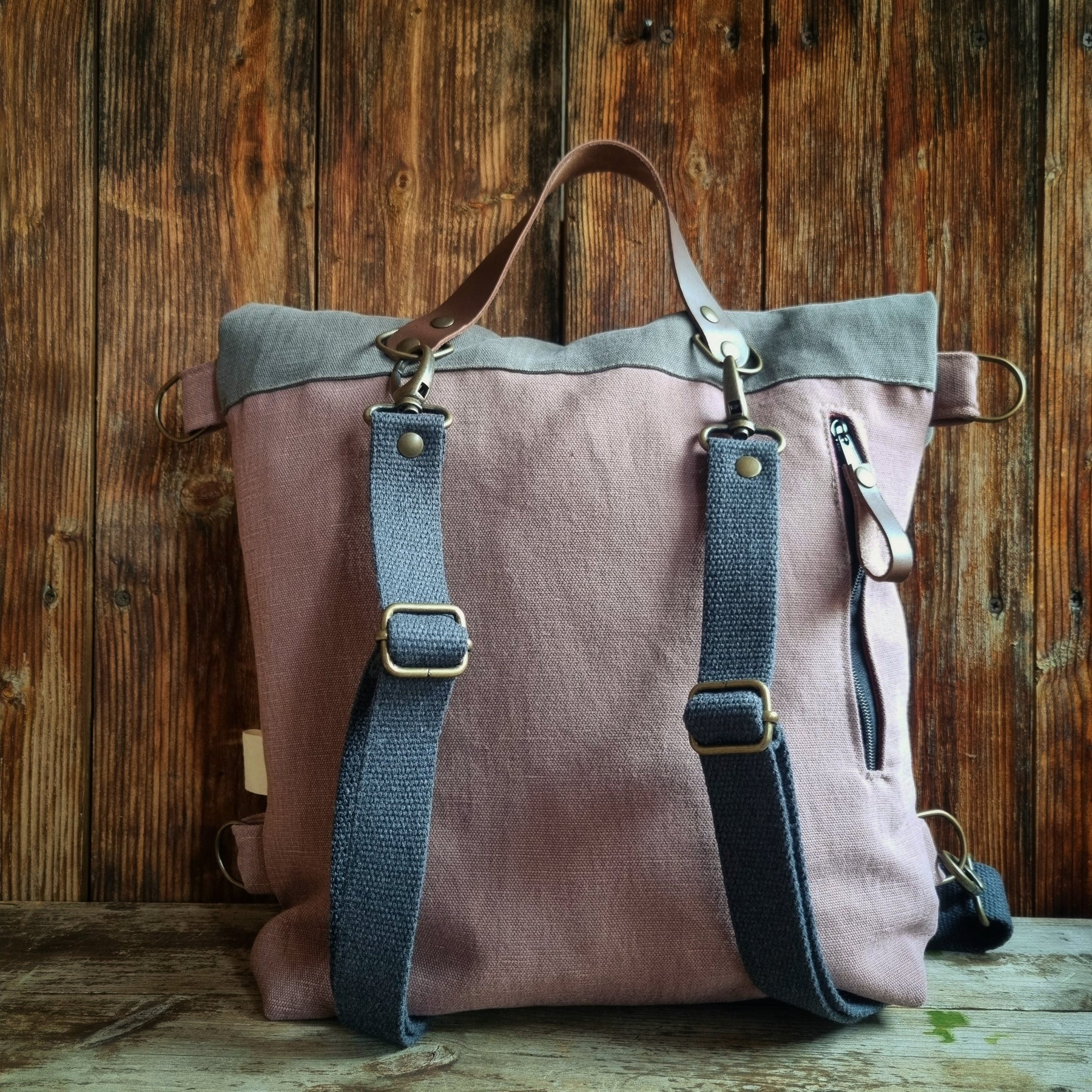 Funzionale e versatile, lo zaino Noce si adatta alle tue esigenze con un semplice gesto: grazie ai moschettoni, puoi trasformarlo rapidamente da zaino a borsa a spalla, rendendolo perfetto per chi ama la praticità senza rinunciare allo stile. Realizzato in resistente tessuto di cotone d’arredamento, combina robustezza ed estetica naturale. L'interno spazioso e le tasche organizzative lo rendono ideale per la vita di tutti i giorni, sia in città che in mezzo alla natura.